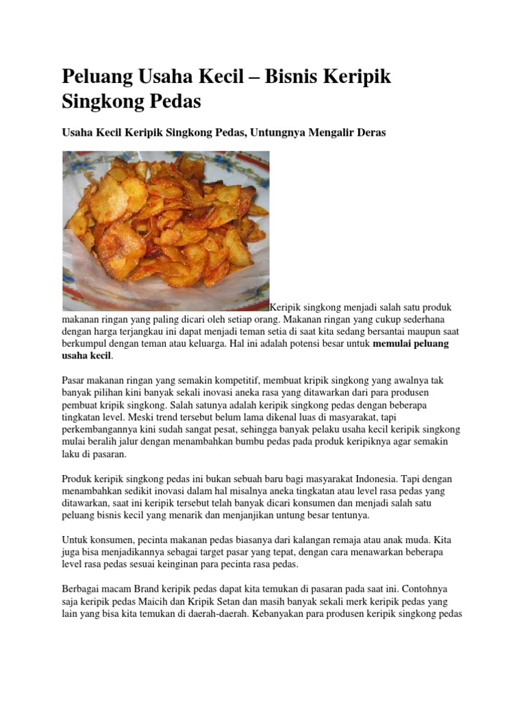 Keripik singkong yang enak dan lezat keripik singkong yang sehat bebas kolestrol serta. Proposal Bisnis Keripik Pisang dan Keripik Singkong BAB I PENDAHULUAN I1 Latar Belakang Di masa sekarang ini dimana masyarakat kita sudah sangat kritis terhadap mutu makanan yang sehat terutama makanan yang bersifat cemilan atau jajanan ringan. Grobogan Jawa Tengah Nomor Telepon email.