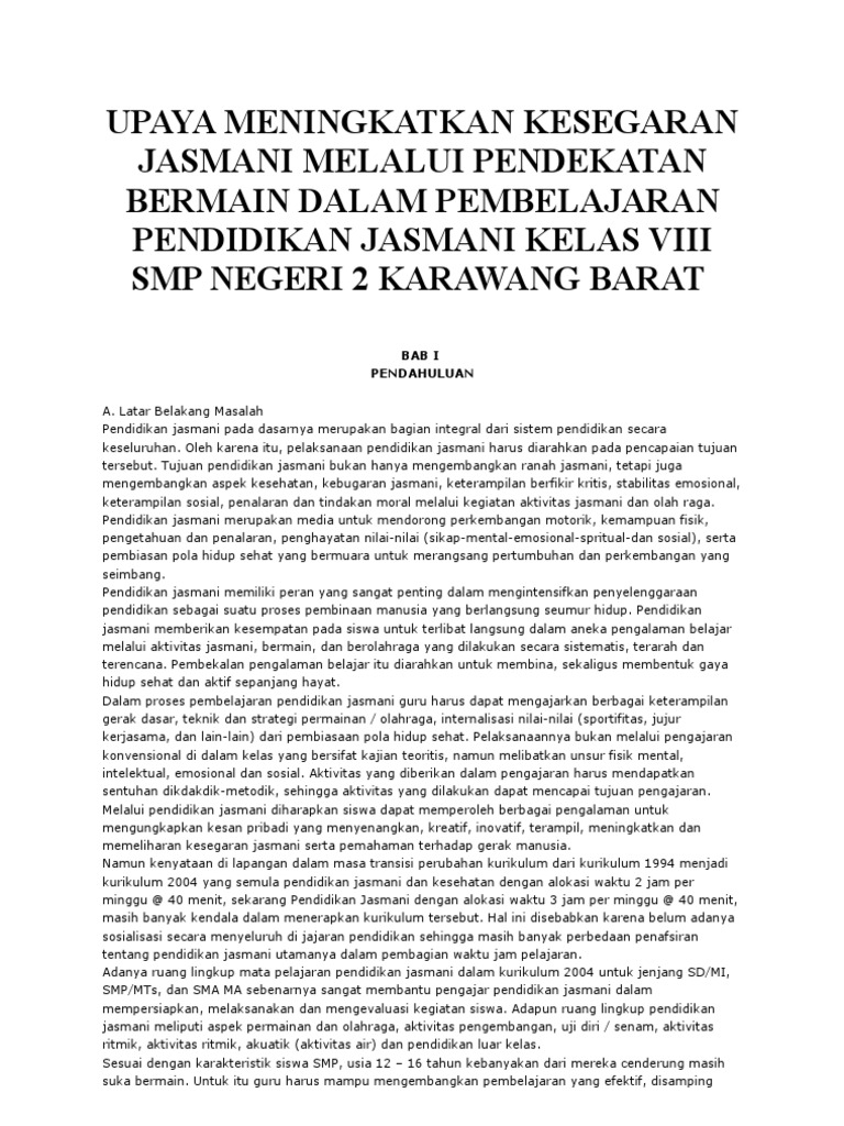 Karena kita semua suka. Oleh karena itu jasmani dan olahraga terus ditingkatkan dan. Contoh Judul penelitian Tindakan Kelas.