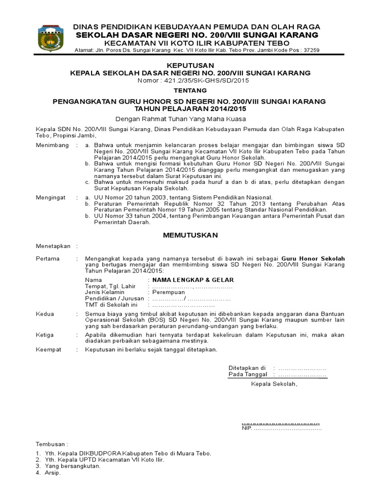 Contoh Sk Pengangkatan Guru Honorer Smk Guru Paud